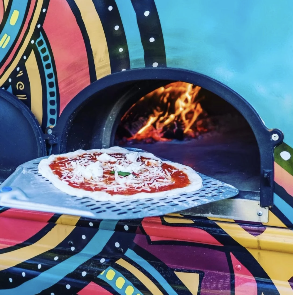 Enjoy a rotating food truck, grab a drink, and cosy up inside with friends.